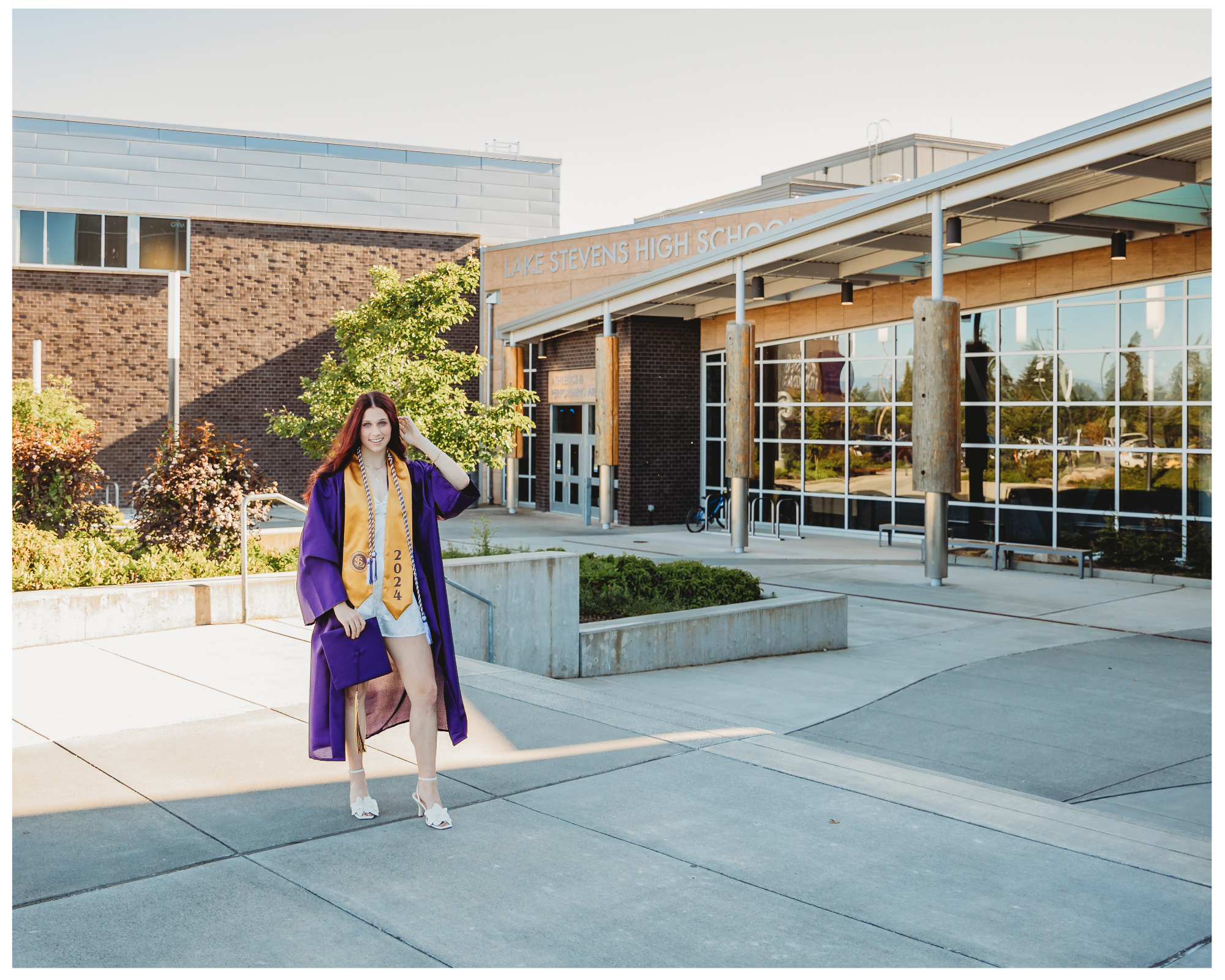Think college sweatshirts, a letterman jacket, or something that represents their next step. Flowers, confetti, or even a simple champagne pop can add a fun, celebratory feel. Some seniors choose locations that mean something to them—like their school, a favorite park, or a mountain view that reflects their personality.